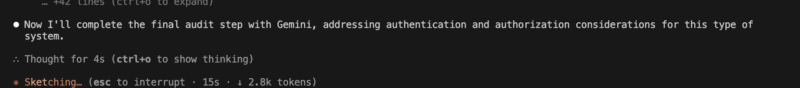 Prompt via claude to do a security audit on the current repo. Claude will be gathering information, then sending the information to Gemini to do some “deep analysis”.